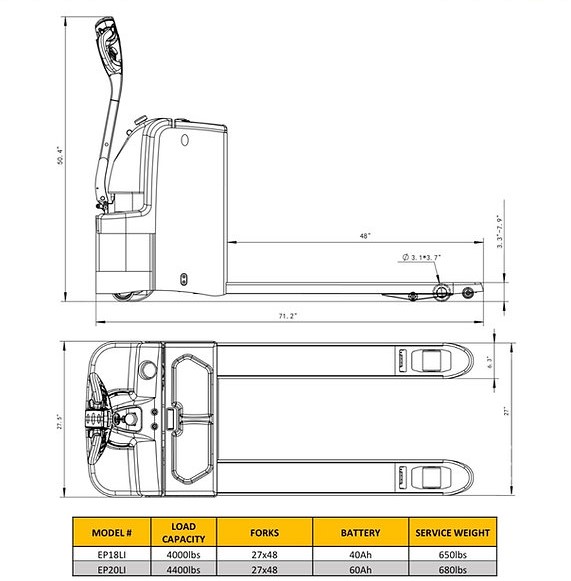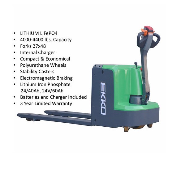 EKKO EP20Li Lithium Iron Phosphate Pallet Jack 4400 lb Capacity