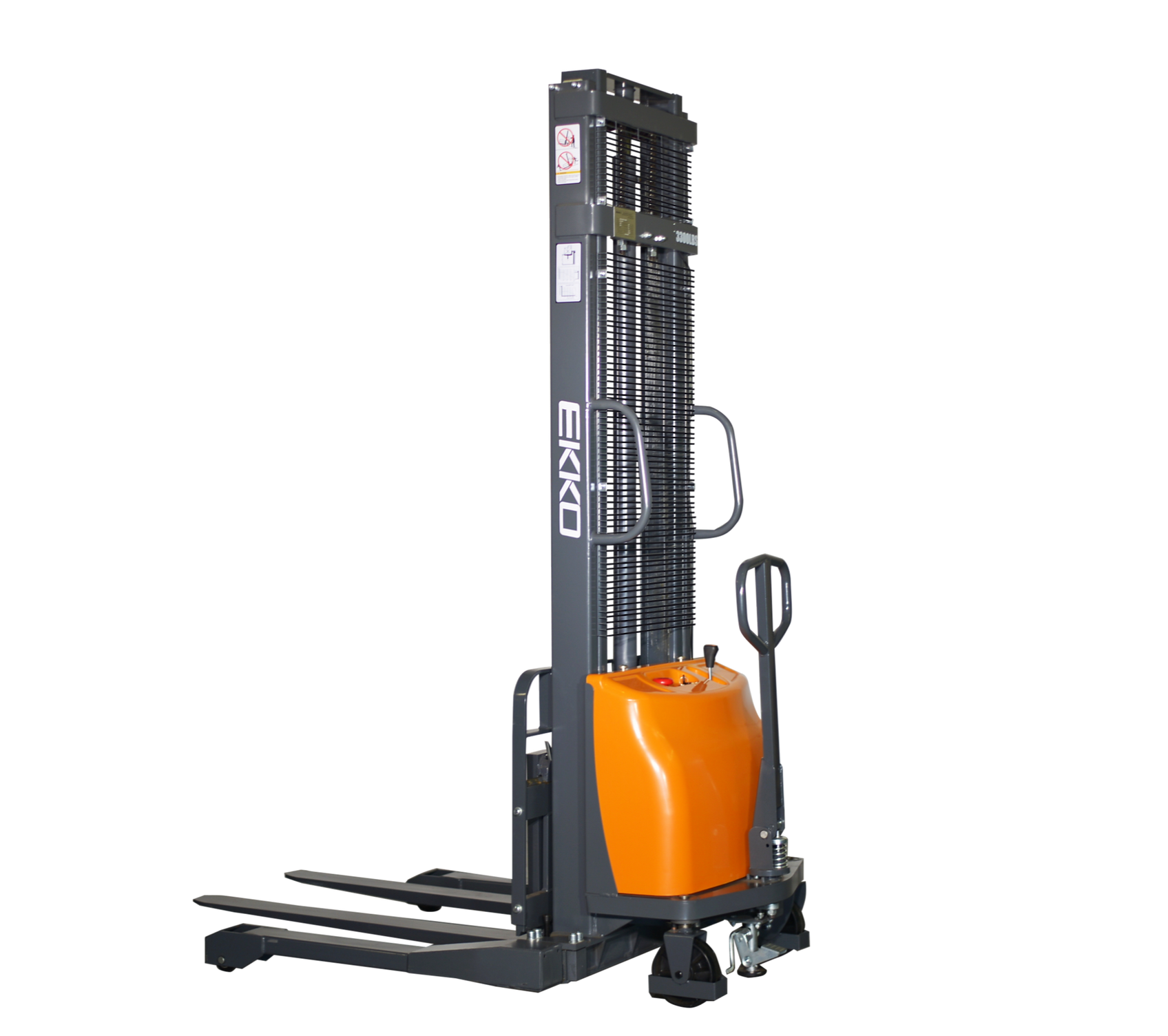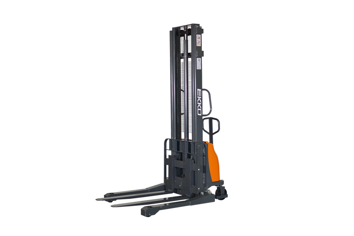 The EKKO EA15A-138 Semi-Electric Straddle Stacker is designed with the combination of the versatility of forklift and a pallet stacker. It is ideal for loading and unloading trucks, loading docks, stock rooms, manufacturing floors and warehousing.