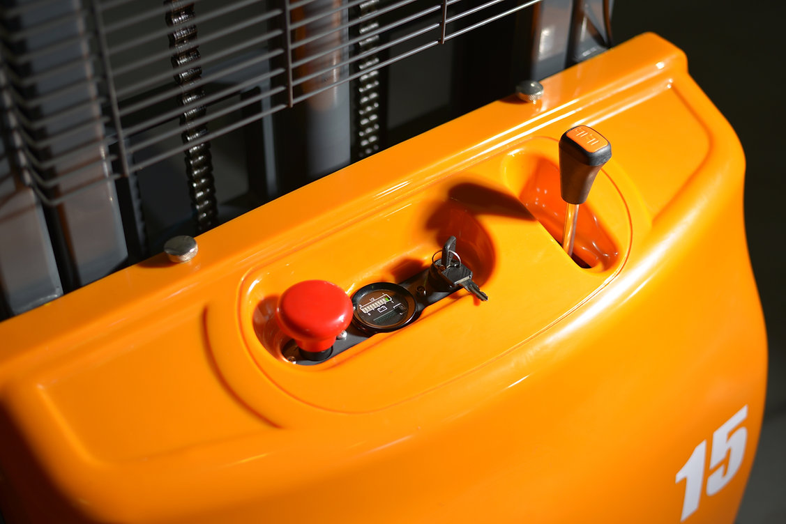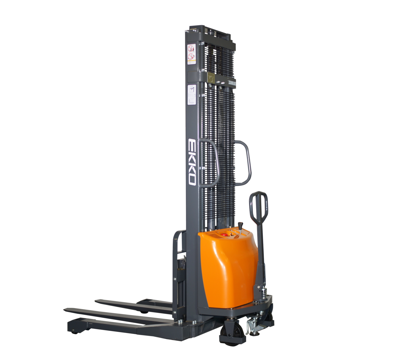 The EKKO EA15A Semi-Electric Straddle Stacker is designed with the combination of the versatility of forklift and a pallet stacker. It is ideal for loading and unloading trucks, loading docks, stock rooms, manufacturing floors and warehousing.