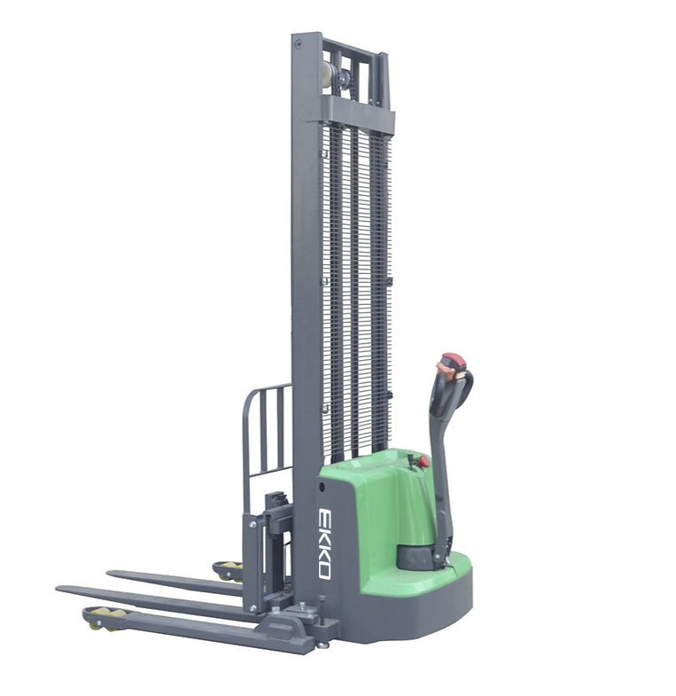 The EKKO EB13ES-Li Lithium Electric Straddle Stacker Side Shift is designed with the combination of the versatility of a forklift, reach truck and a walkie stacker. It is ideal for loading and unloading trucks, loading docks, stock rooms, manufacturing floors and warehousing.