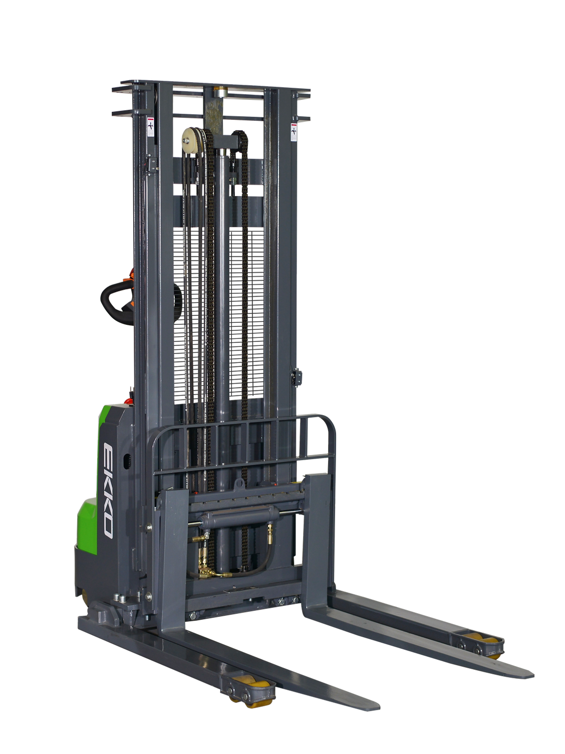 The EKKO EB14CS-138Li Electric Straddle Stacker is designed with the combination of the versatility of a forklift, reach truck and a walkie stacker. It is ideal for loading and unloading trucks, loading docks, stock rooms, manufacturing floors and warehousing.