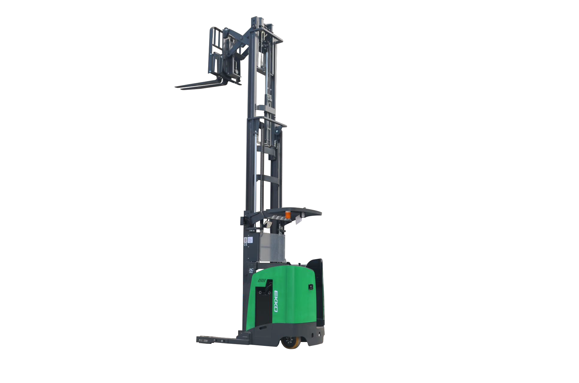 The EKKO EK18RR-270Li Stand-up Narrow Aisle Reach Truck is designed with the combination of the versatility of a forklift, reach truck and a walkie stacker. It is ideal for loading and unloading trucks, loading docks, stock rooms, manufacturing floors and warehousing.